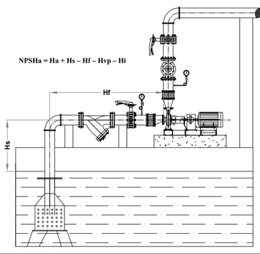 NPSHa = Ha + Hz - Hf - Hvp