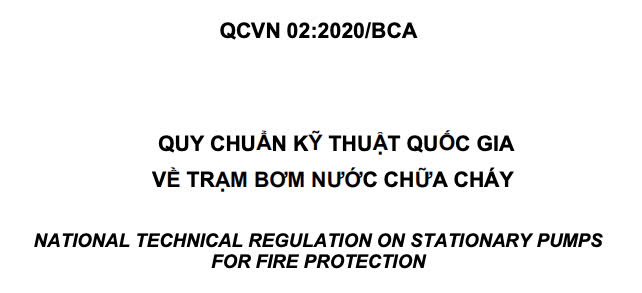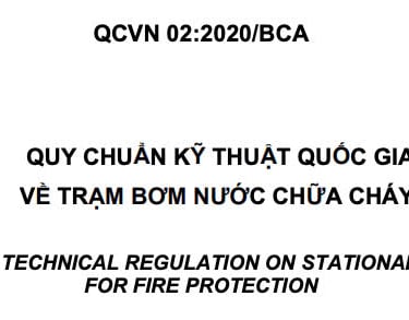 QCVN 02:2020/BCA là quy chuẩn quy định về yêu cầu an toàn, kỹ thuật đối với trạm bơm nước chữa cháy cố định trong các giai đoạn thiết kế, lắp đặt, vận hành, nghiệm thu, kiểm tra, bảo dưỡng, quản lý.